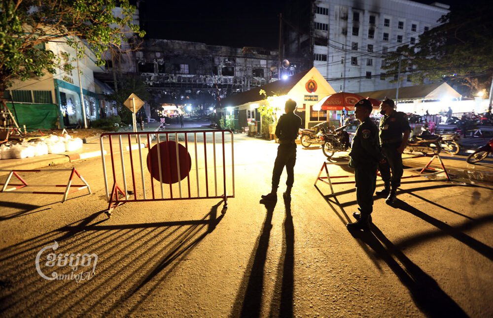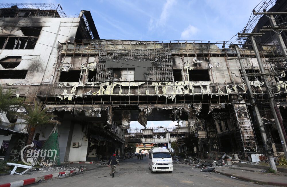 CamboJA reporters reached the casino shortly after midnight Thursday as smoke simmered from the charred building.