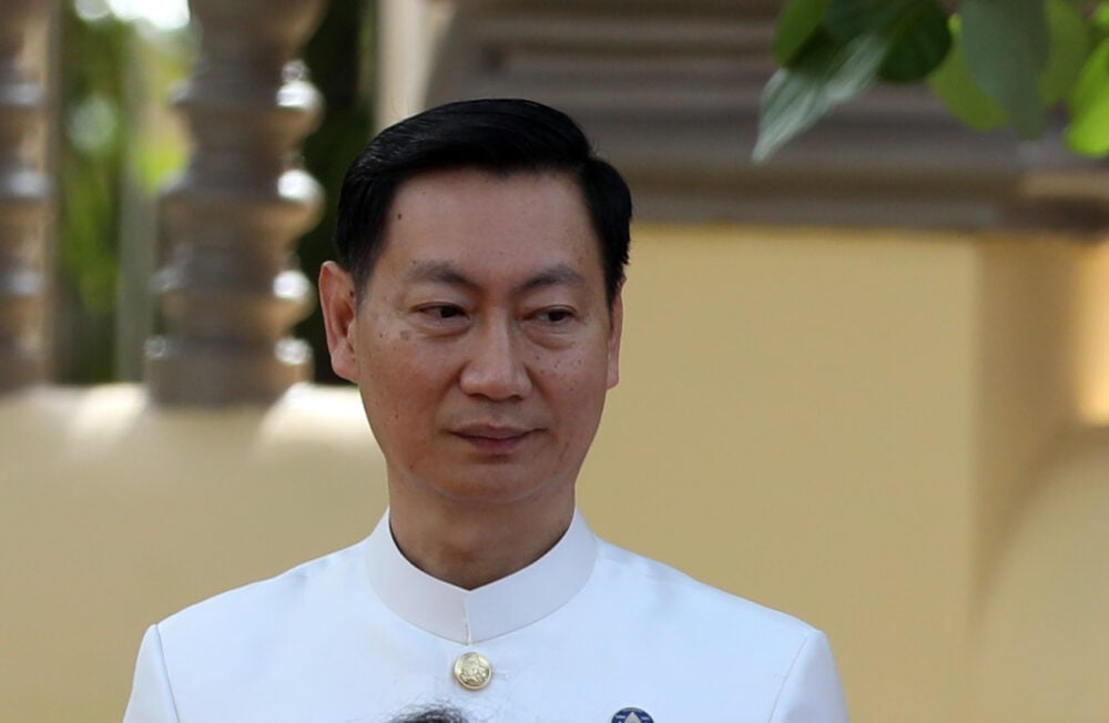 His wife, Chansopheak, has business ties with Hun Manet’s wife Pich Chanmony through the company Hibrand Tech and electronics supplier GGEAR Group, which Chanmony chairs according to Commerce Ministry records.