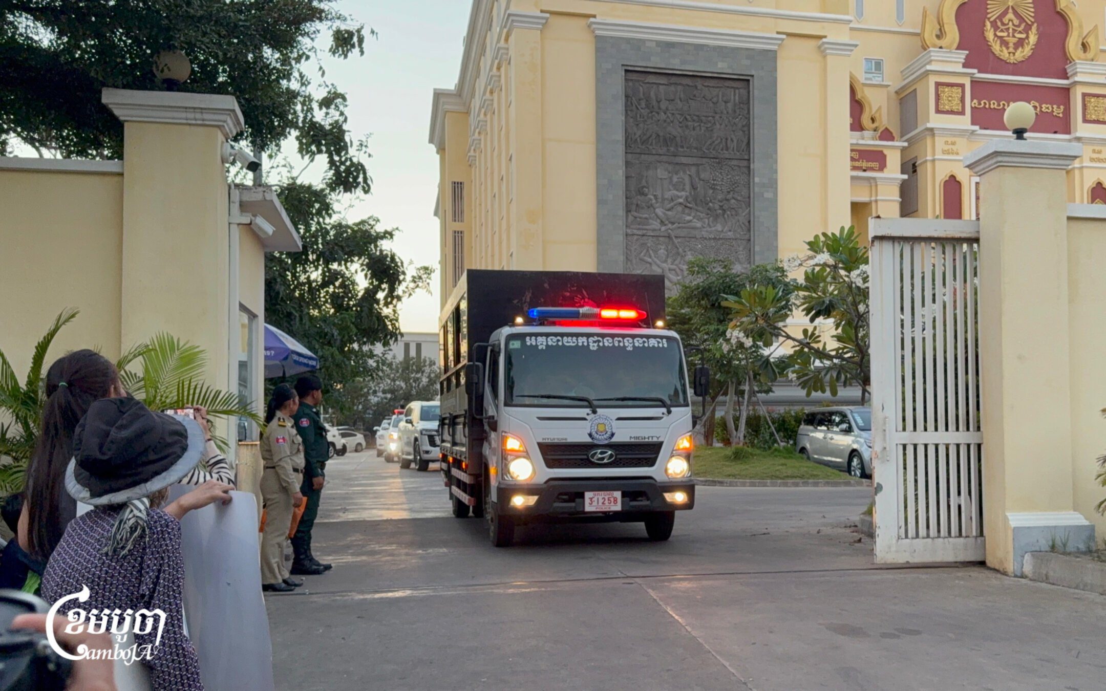 Four of the activists were transported to the court about 2 p.m while Thon Ratha arrived at 2:26 p.m. Ratha yelled from the prison vehicle, “I’m doing okay, I’m doing okay”, waving to supporters with his handcuffed hands.