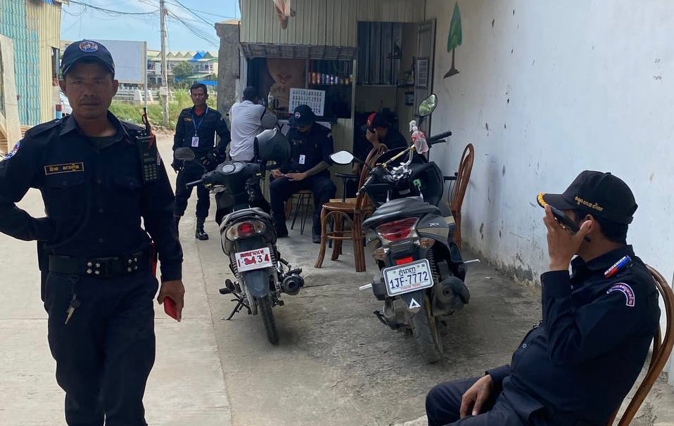 Uniformed district security guards were gathered 5 meters from her house in Meanchey district’s Boeng Tompun II commune beginning at 6 a.m., Chantha said. By about 5:30 p.m. several officers were still lingering outside her home, and one told her they would be there until Sunday morning.