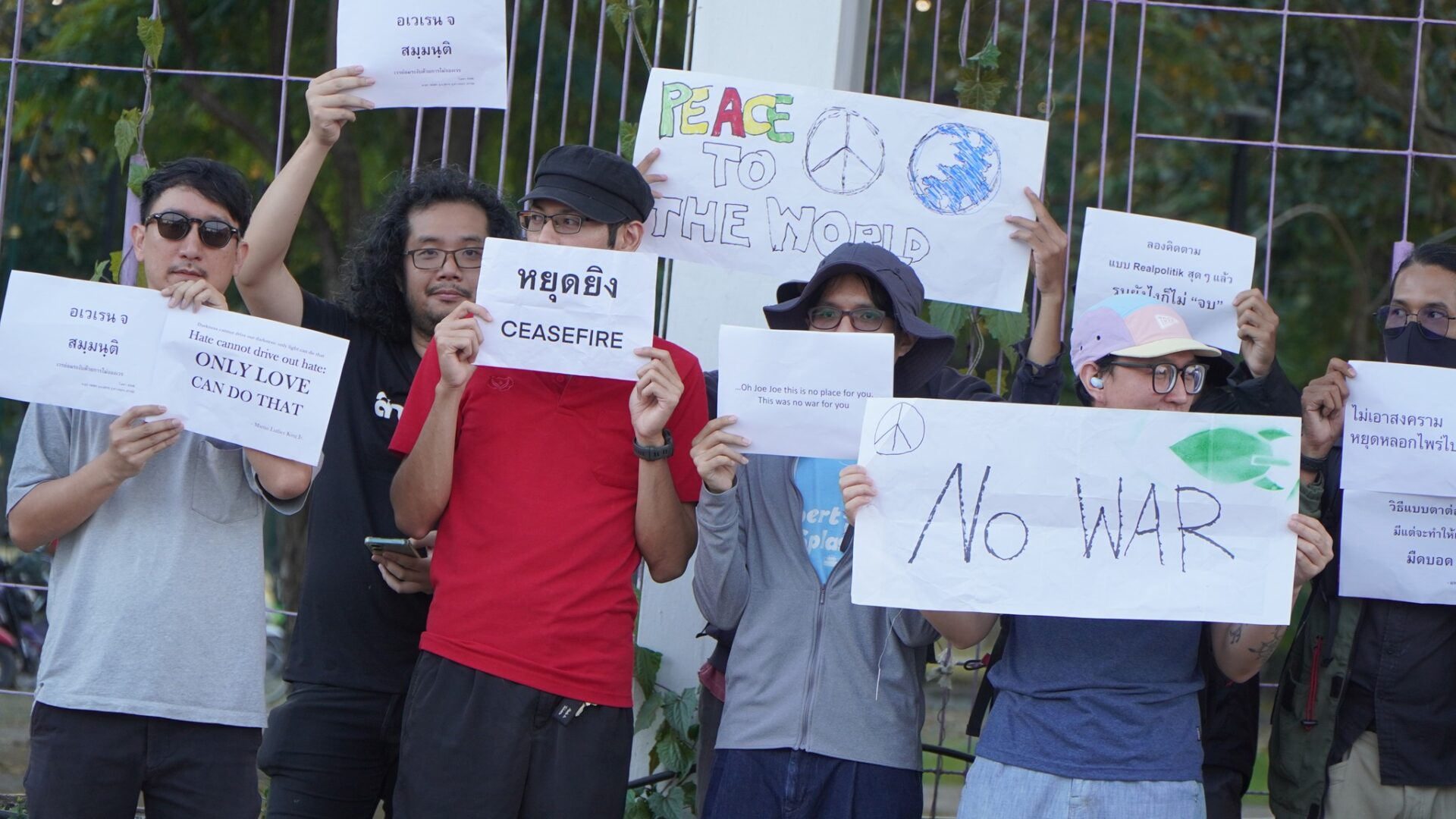 Over in Thailand, Chiang Mai students and residents staged an anti-war protest on Wednesday in front of Chiang Mai University demanding an end to armed clashes, according to Thai media Prachatai English.
