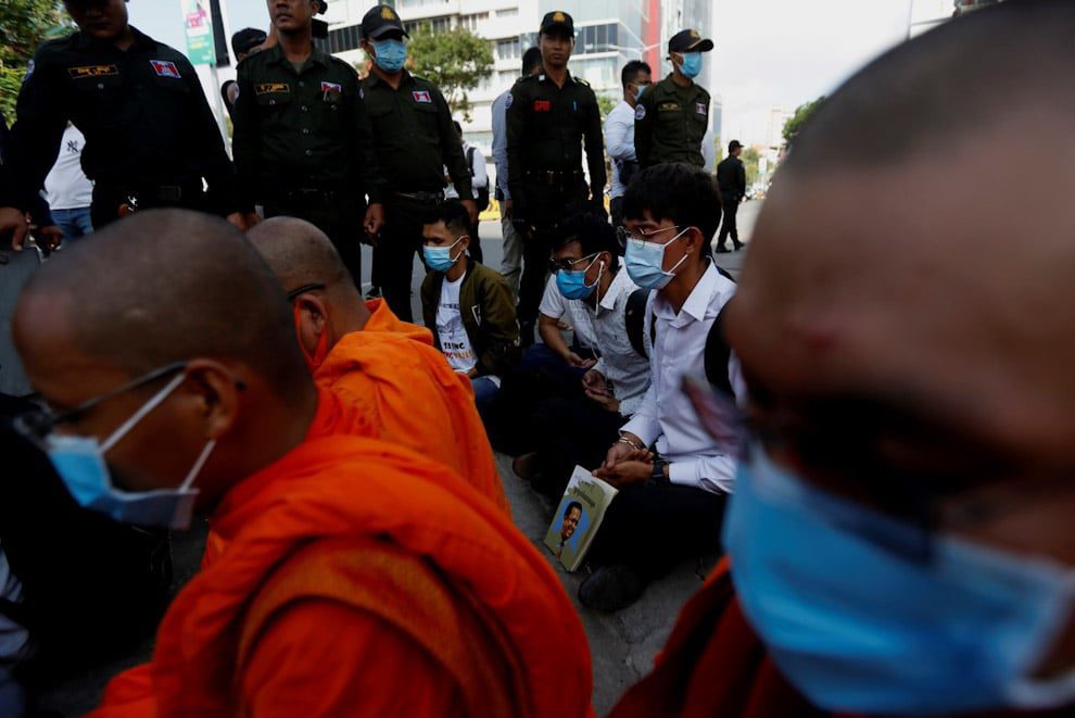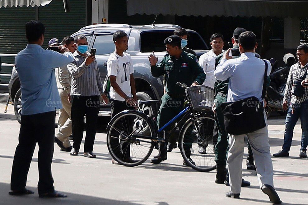 Chamkar Mon district police officials and security guards on July 8 prevented youth activists and monks from marching and detained a man wearing a T-shirt with Kem Ley’s image during…