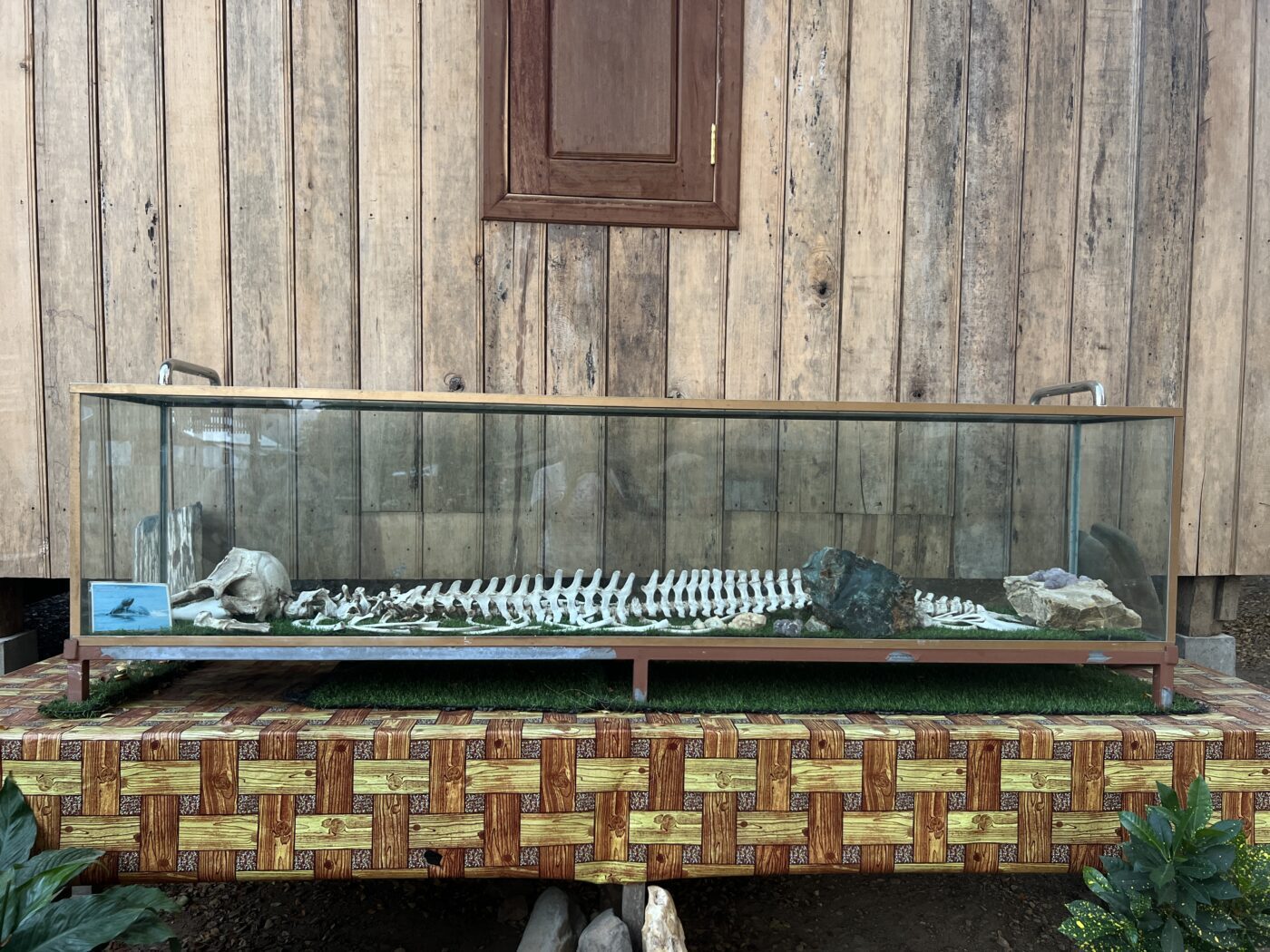 Vanna looks at the dead dolphin skeletons displayed at the Preah Rumkel Tourist Office. They stand as a stark testament to ecological loss, a haunting echo of what once thrived in these waters.