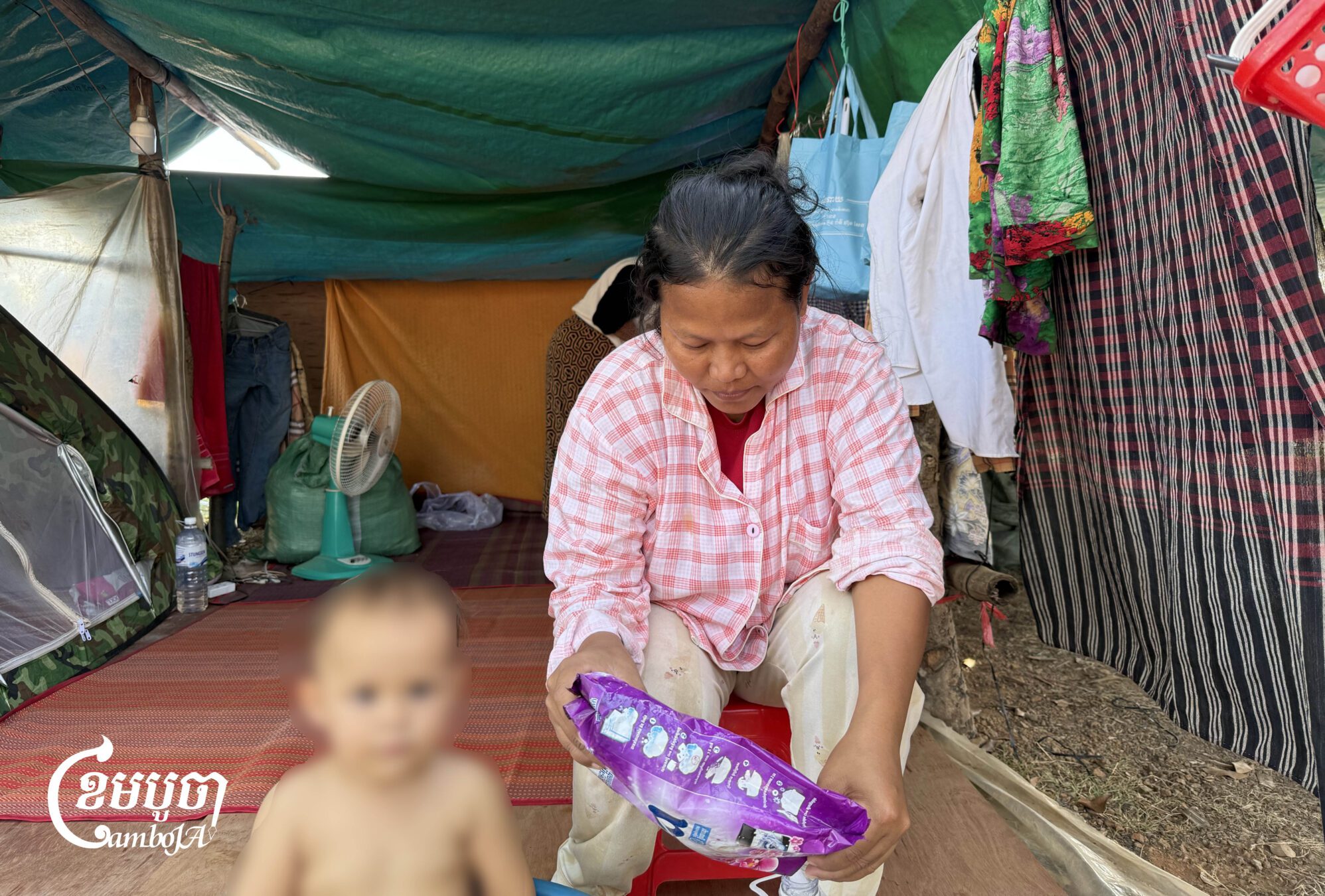 Phay Chanly, a resident of Damnak Kandor village, Romdoh Sre commune, Choam Ksan district in Preah Vihear province – about 40 kilometers from the Thai border, hopes that the armed conflict between Cambodia and Thailand will end soon. Having returned with her young child to the camp again this season, she is afraid that both of them would suffer from constant flu.