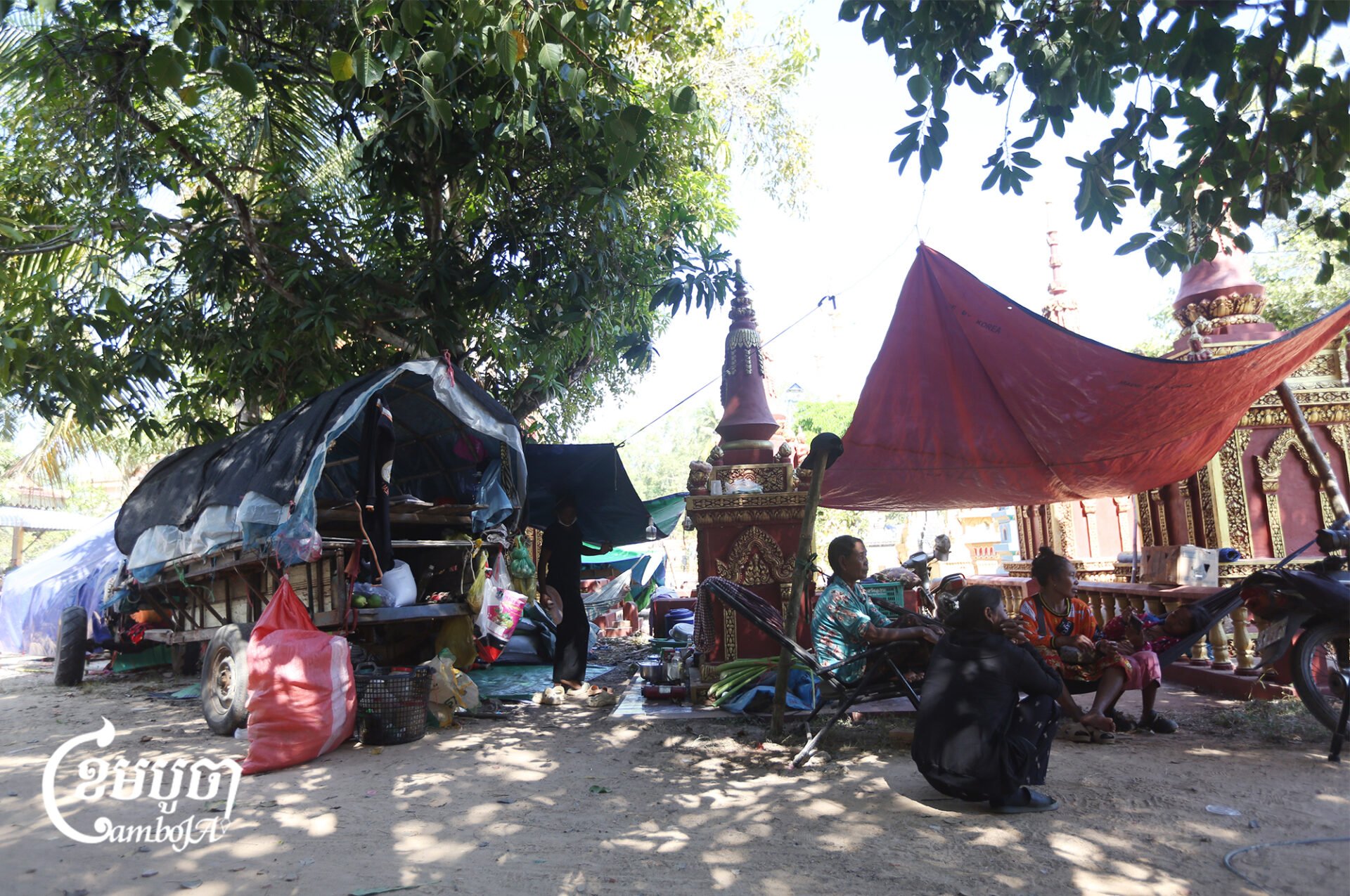 Displaced people stay at a camp shelter in a pagoda in Kralanh district, Siem Reap province, Dec. 25, 2025. (CamboJA/Pring Samrang)