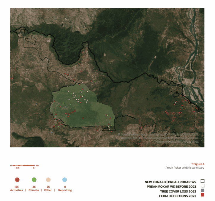 Looking at some of the figures, the report showed that Prey Lang wildlife sanctuary alone lost over 9,532 hectares of tree cover in 2023, bringing the total loss in the sanctuary to 85,864 ha since 2001.