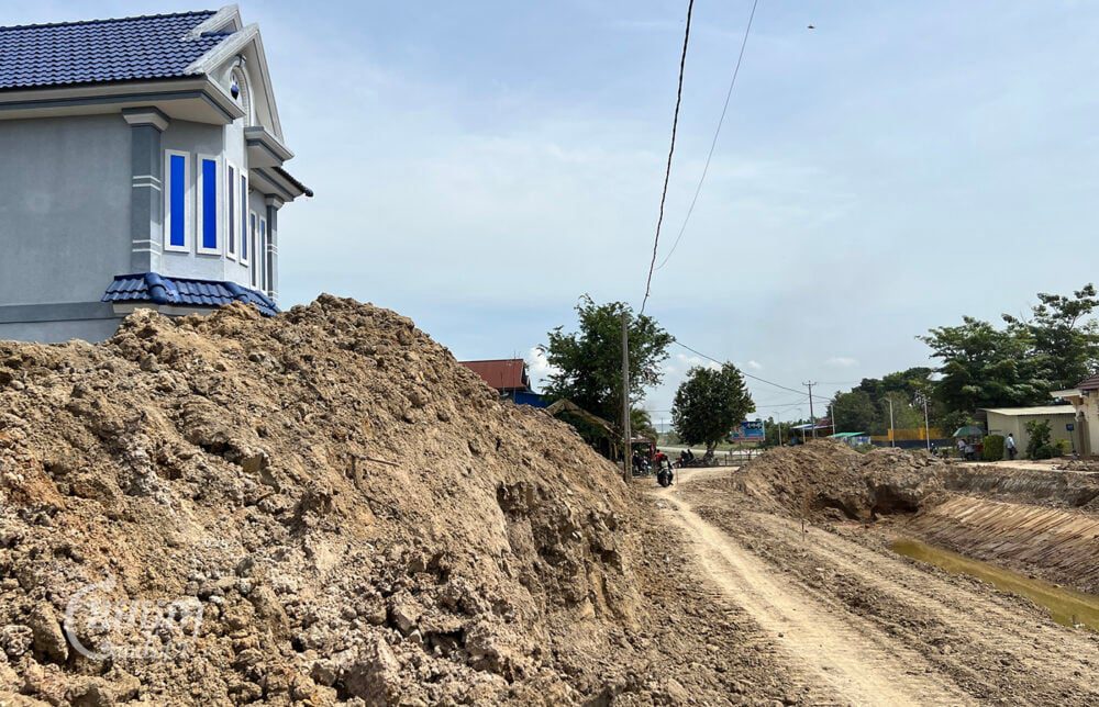 On Wednesday last week, at least 10 excavators arrived to expand 88 canals along Boeung Khyang and Prek Sleng communes, impacting houses located on both sides of the canal. Soil was dumped into the people’s courtyards while some houses were spray-painted with markers and poles erected around their homes.