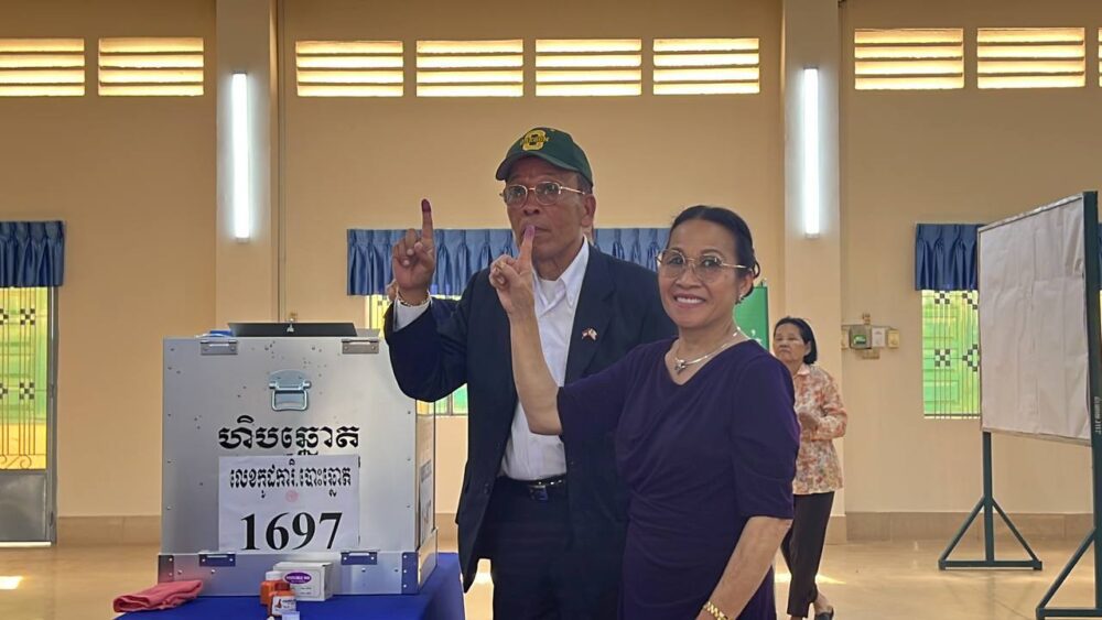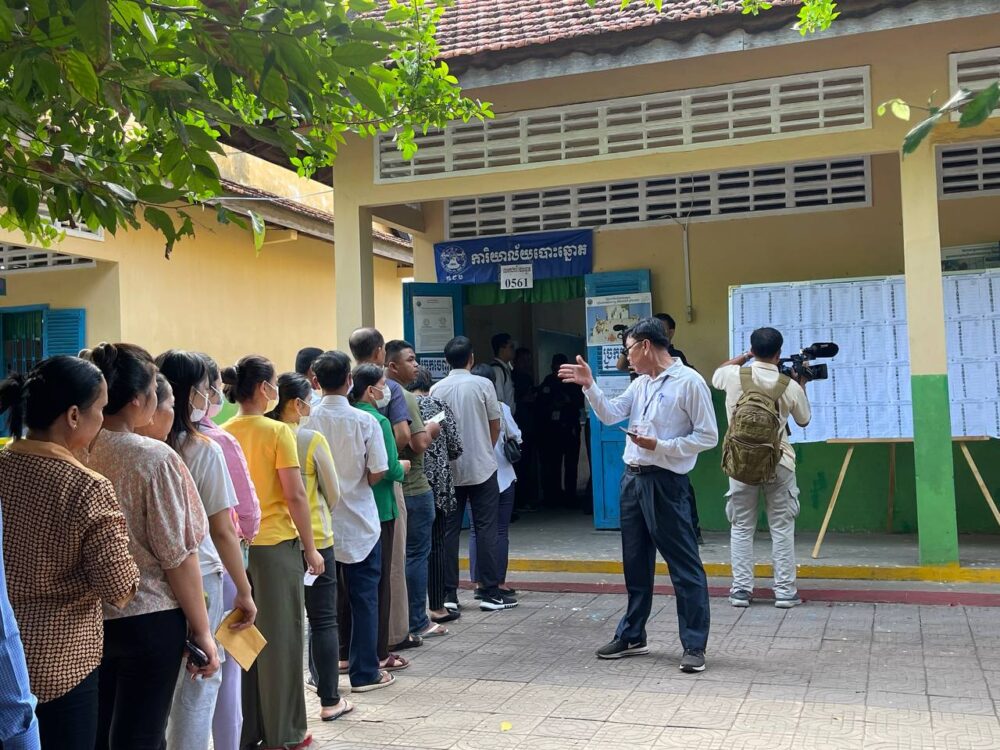 9:58 am: “All the electors, they come to vote smoothly, freely, and you don’t see any incidents, any intimidation,” said National Election Committee spokesperson Dim Sovannarom at the polling location at Toul Kirk Primary School earlier this morning.