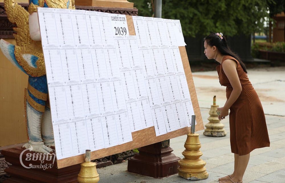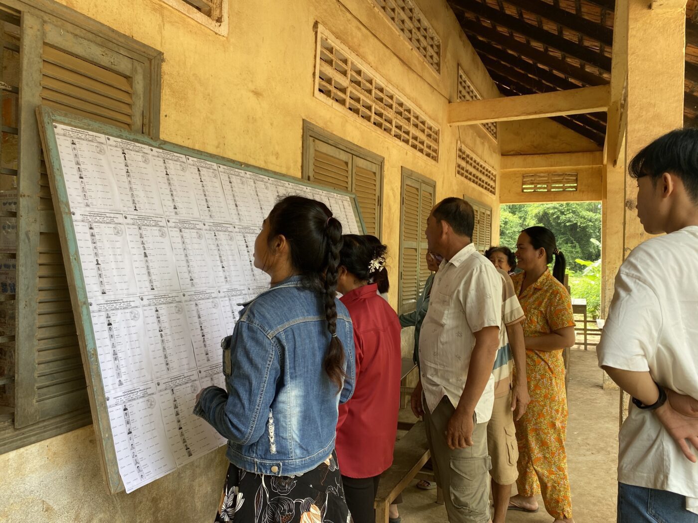 9:12am: Voters look at the names on the voter list at a polling site in Tboung Khmum province’s Kouch Chhmar district. (CamboJA/Runn Sreydeth)
