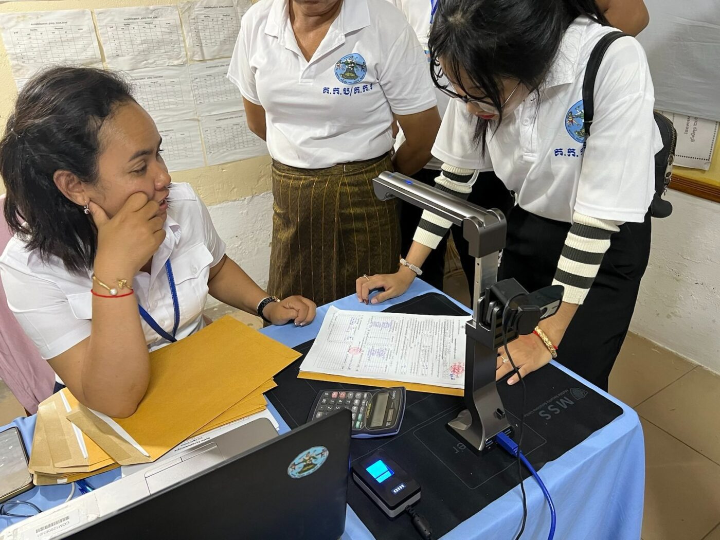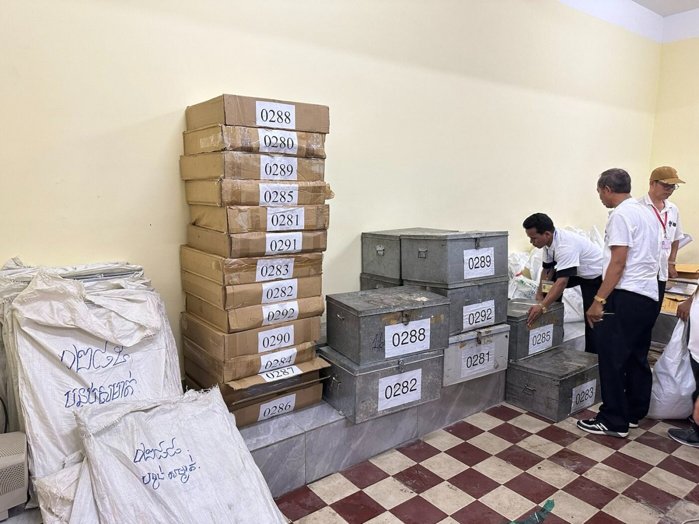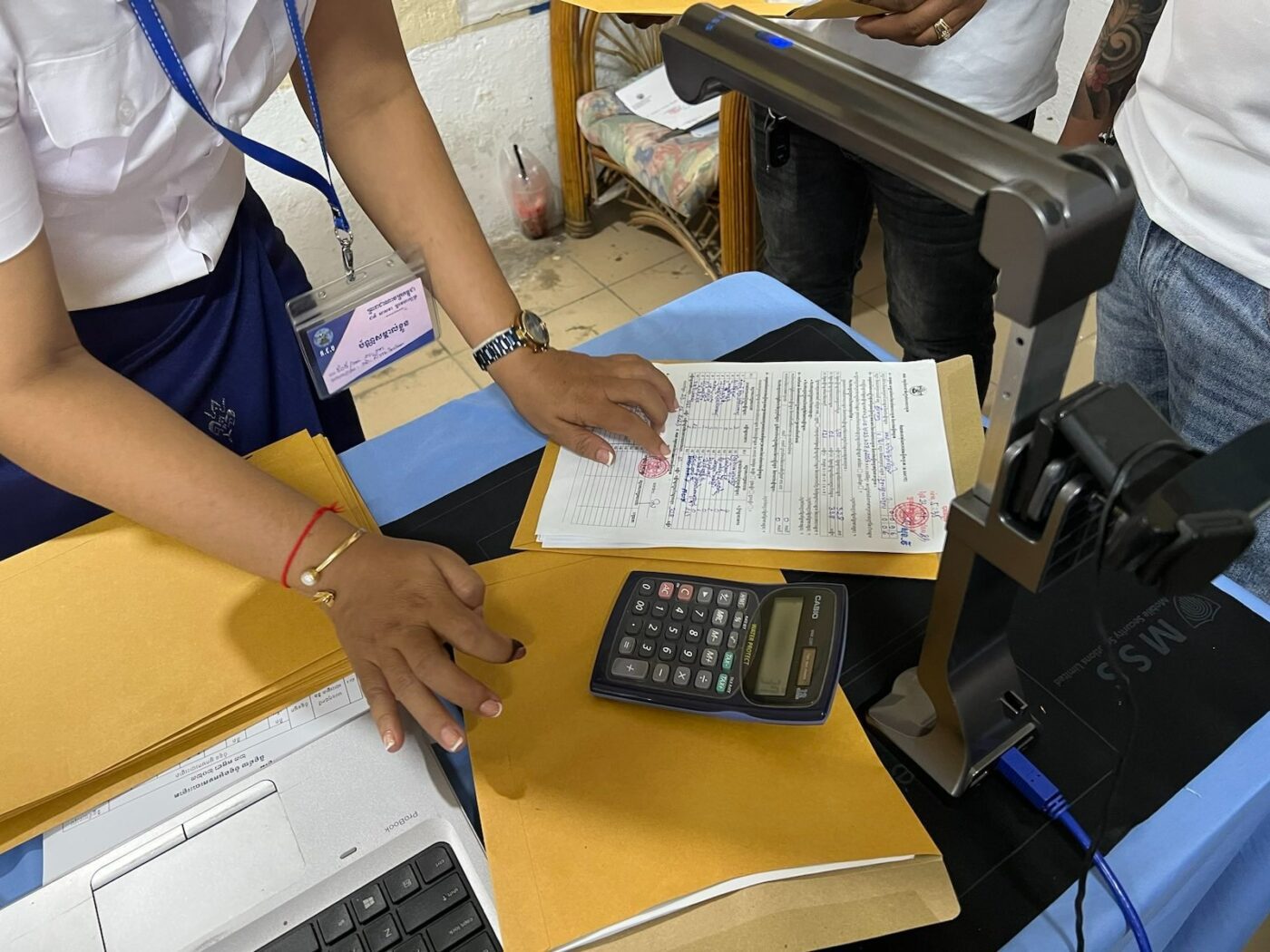 3:30 pm: Poll workers organize ballots at Tuol Svay Prey 1 commune, which Human Rights Watch identified as a site where officials had improperly recorded votes in the 2022 commune elections (the head of the commune’s election committee denied this to CamboJA). At the start of the process, a CamboJA reporter was told by a worker that only one election observer from a political party was present in one room, and she was with the ruling CPP. A CPP observer appeared to be the only observer in another room as well.