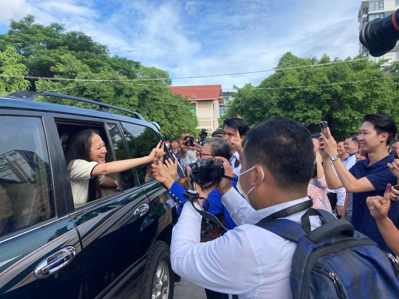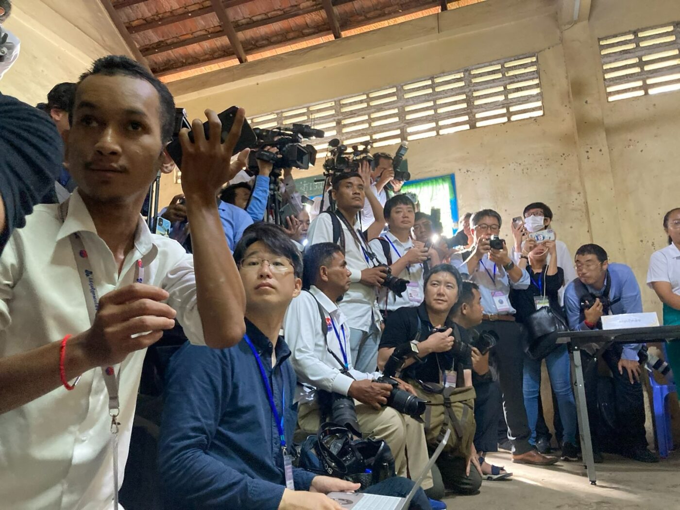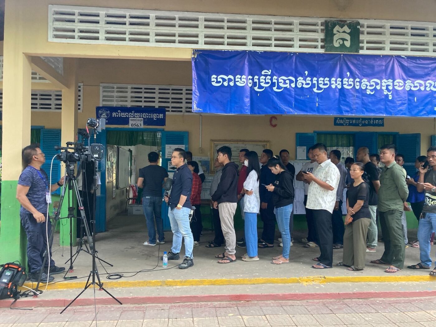 8:01 am: The media awaits the arrival of Hun Manet and his wife Pich Chanmony to vote in Phnom Penh.