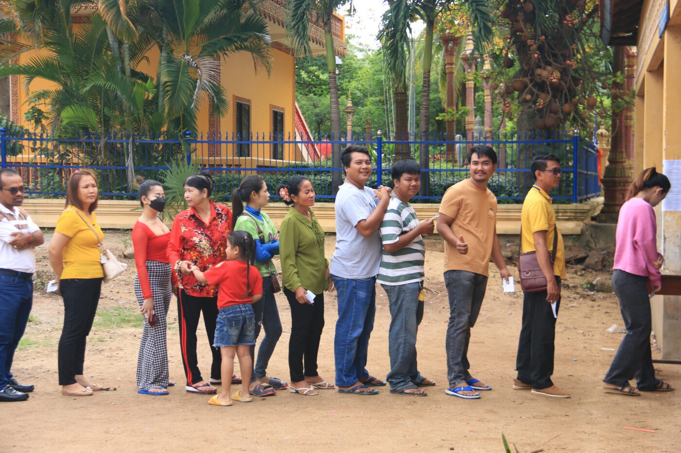 7:07am: Voters lined up where Hun Manet, the ruling CPP’s top candidate for Phnom Penh. (Khy Sovuthy)