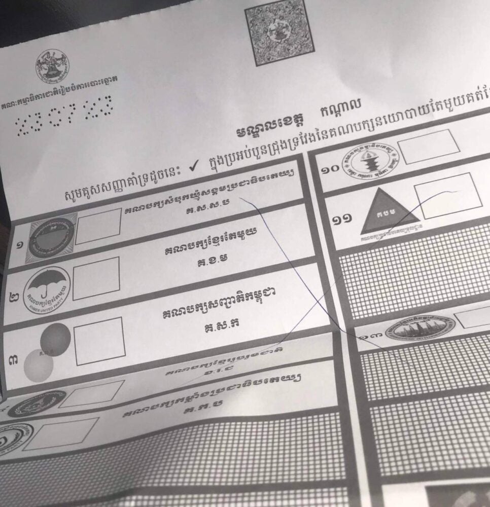Former Candlelight Party commune councilor Kung Raiya, who briefly joined the CPP before quitting last week and applying for political asylum with the UN, also posted a photo of a spoiled ballot on his Facebook page.