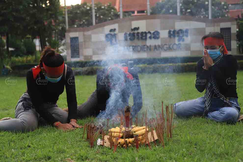 The three activists with the Le Meridien Angkor Trade Union — Doeum Chhaya, Sok Naren and Kham Sreypheak — were terminated for allegedly inciting workers via Facebook to support a smaller salary reduction. Employees have since held demonstrations outside the provincial labor department and the hotel as meetings aiming to resolve the dispute have repeatedly broken down.