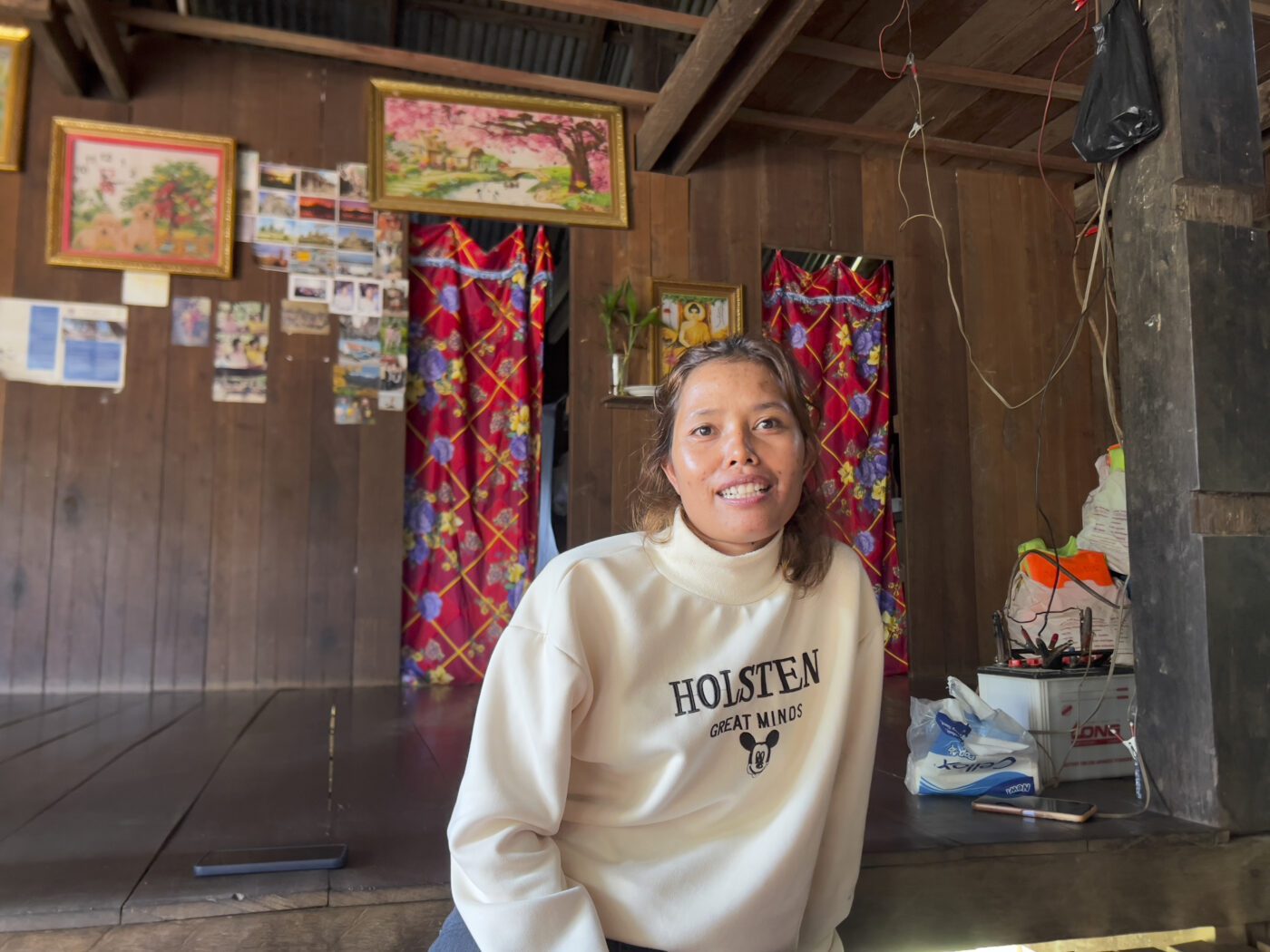 Though most of the area’s electricity on the grid comes from hydropower development, many in this region still use home solar or even car batteries for their low levels of household energy consumption. Meanwhile, residents of Tiem Leu said they receive no irrigation benefits from the various Sesan dams, instead finding themselves manually hauling water from the river as they become more reliant on farming to make their living.