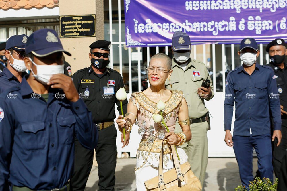 “If they drop the charges or imprison me, no one will pay attention,” she said. “It’s a political theater that they push me to be an actress in. I dress in this costume to represent women and have shaved my hair in condolence to express the hurt and sorrow of the Cambodian people after the brutal killing of [murdered opposition activist] Sin Khon,” she said.
