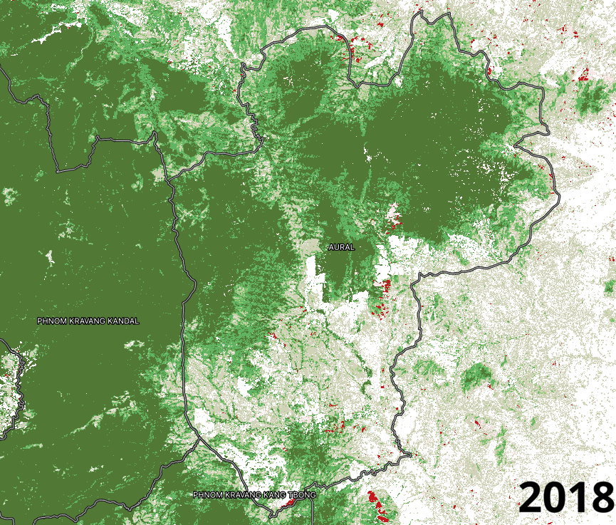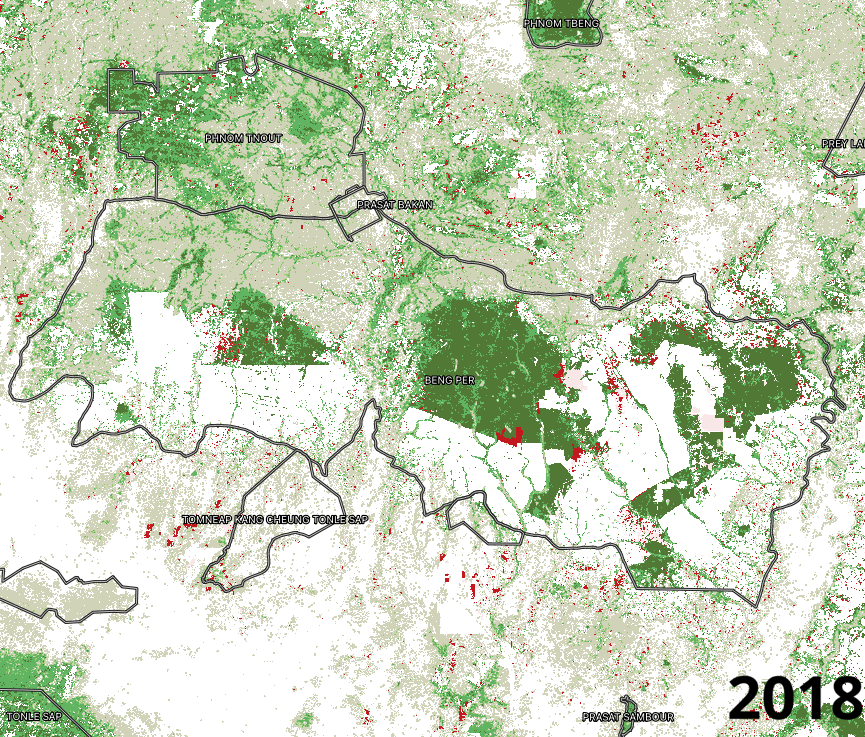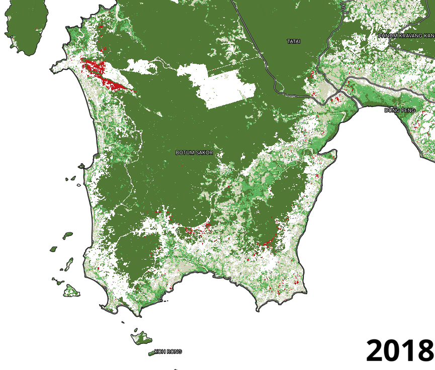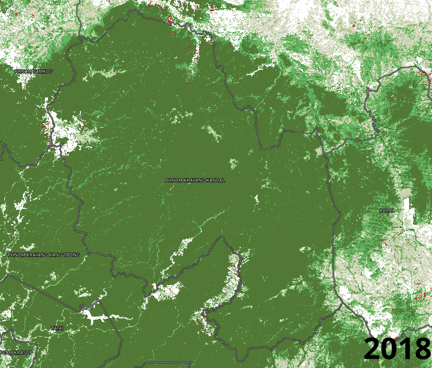 Overall, more than 35,000 hectares of forest cover disappeared in 2022, less compared to the past two years which each exceeded 40,000 hectares. The four worst affected protected areas are: Botum Sakor National Park, the Central Cardamom Mountains National Park, Phnom Aural Wildlife Sanctuary, Beng Per Wildlife Sanctuary.