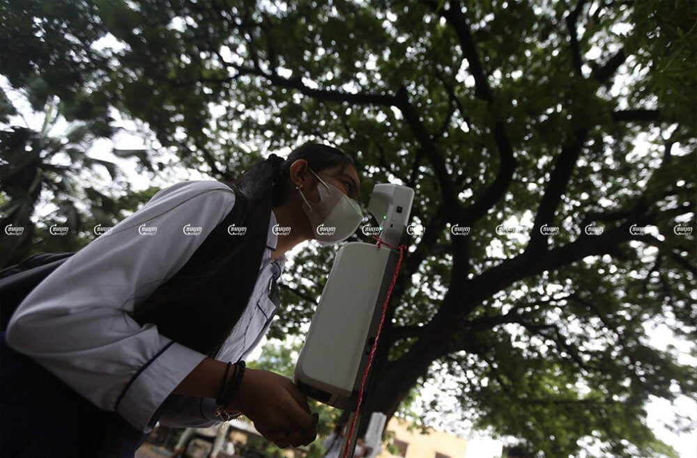 Heng Sreynith, a grade 9 student at Kdey Takoy Secondary School about 10 kilometers from the city centre, said that learning at school is more fruitful than being at home. She told CamboJA she had been tested before coming back to school.