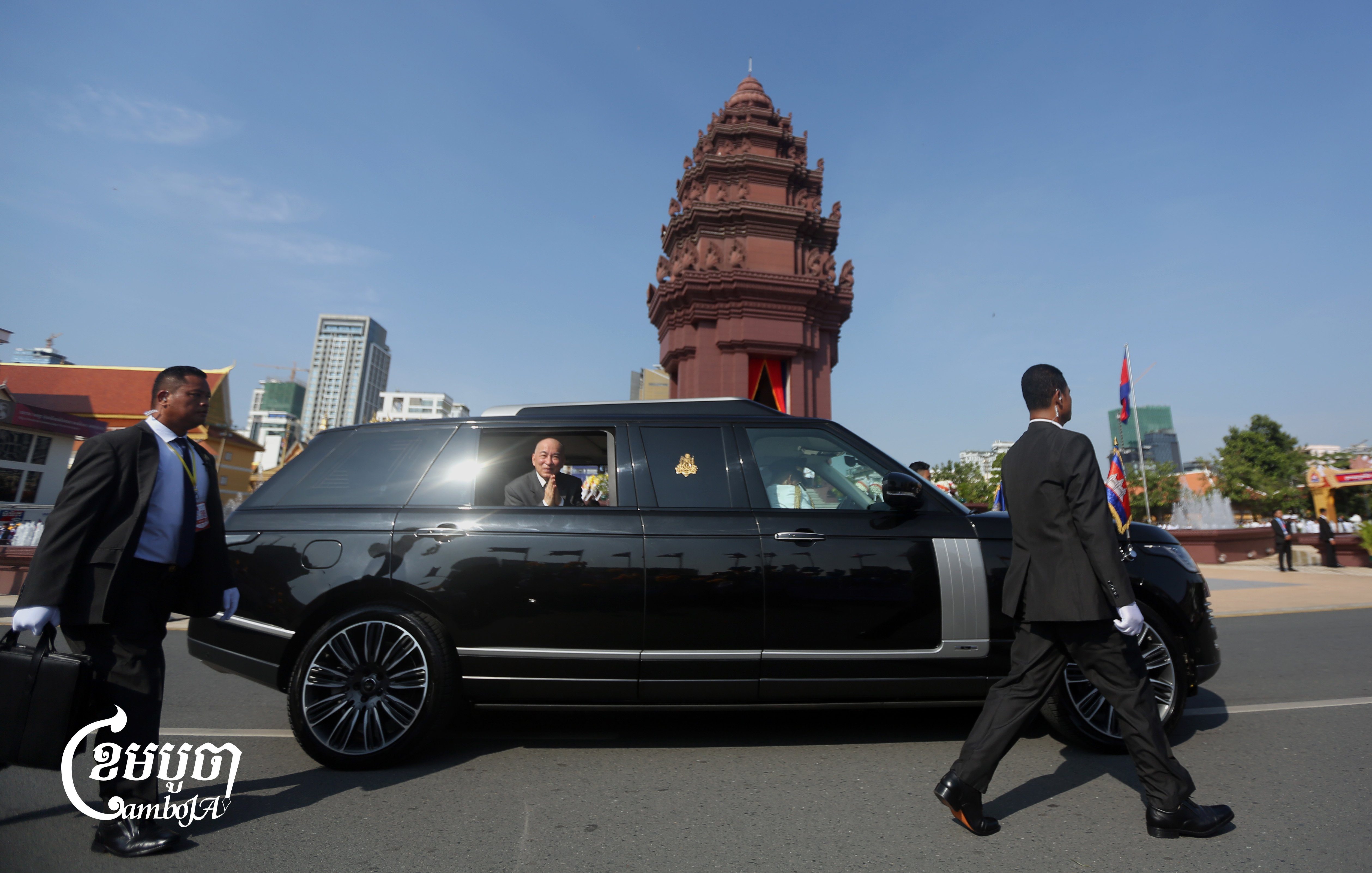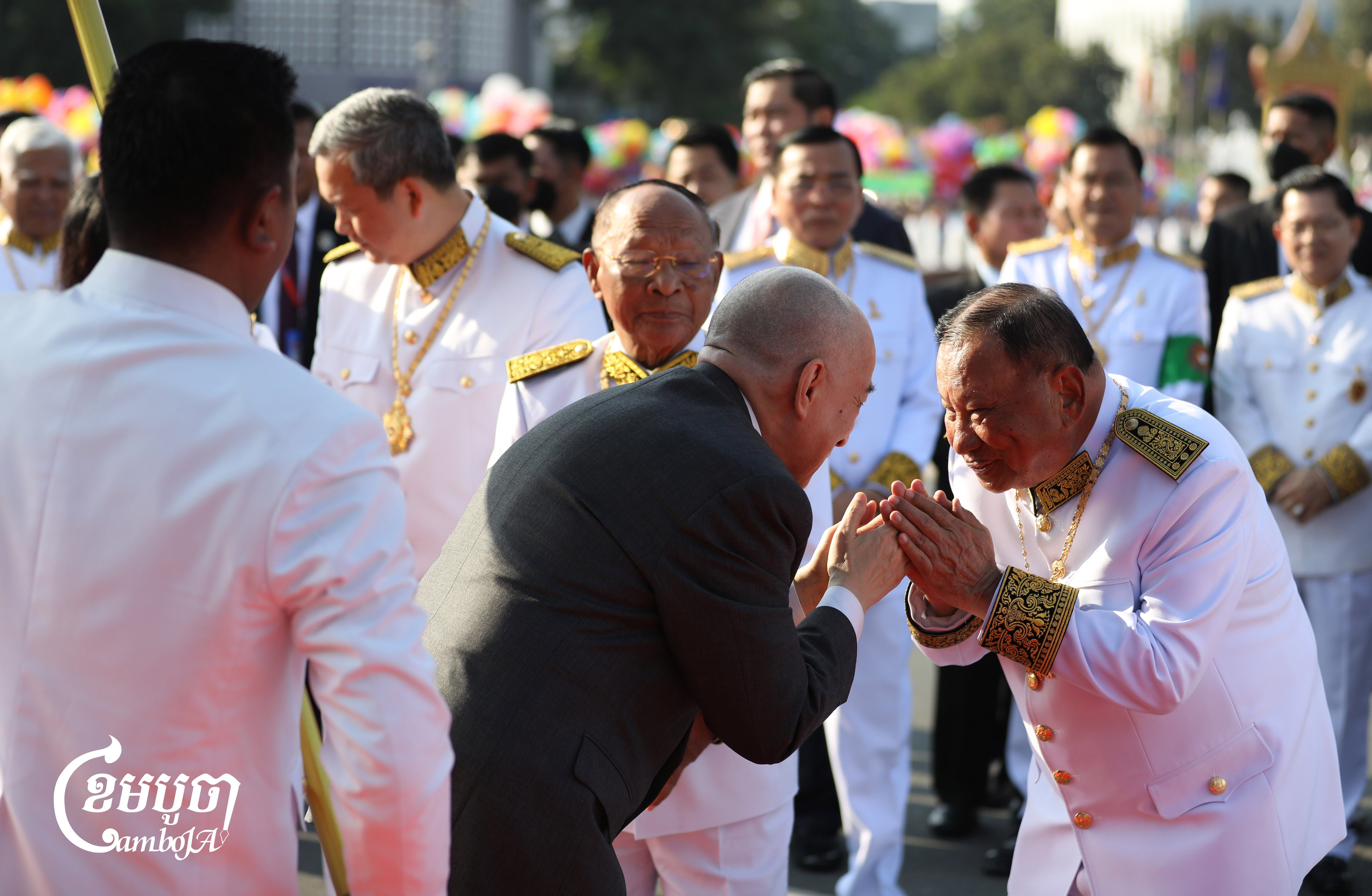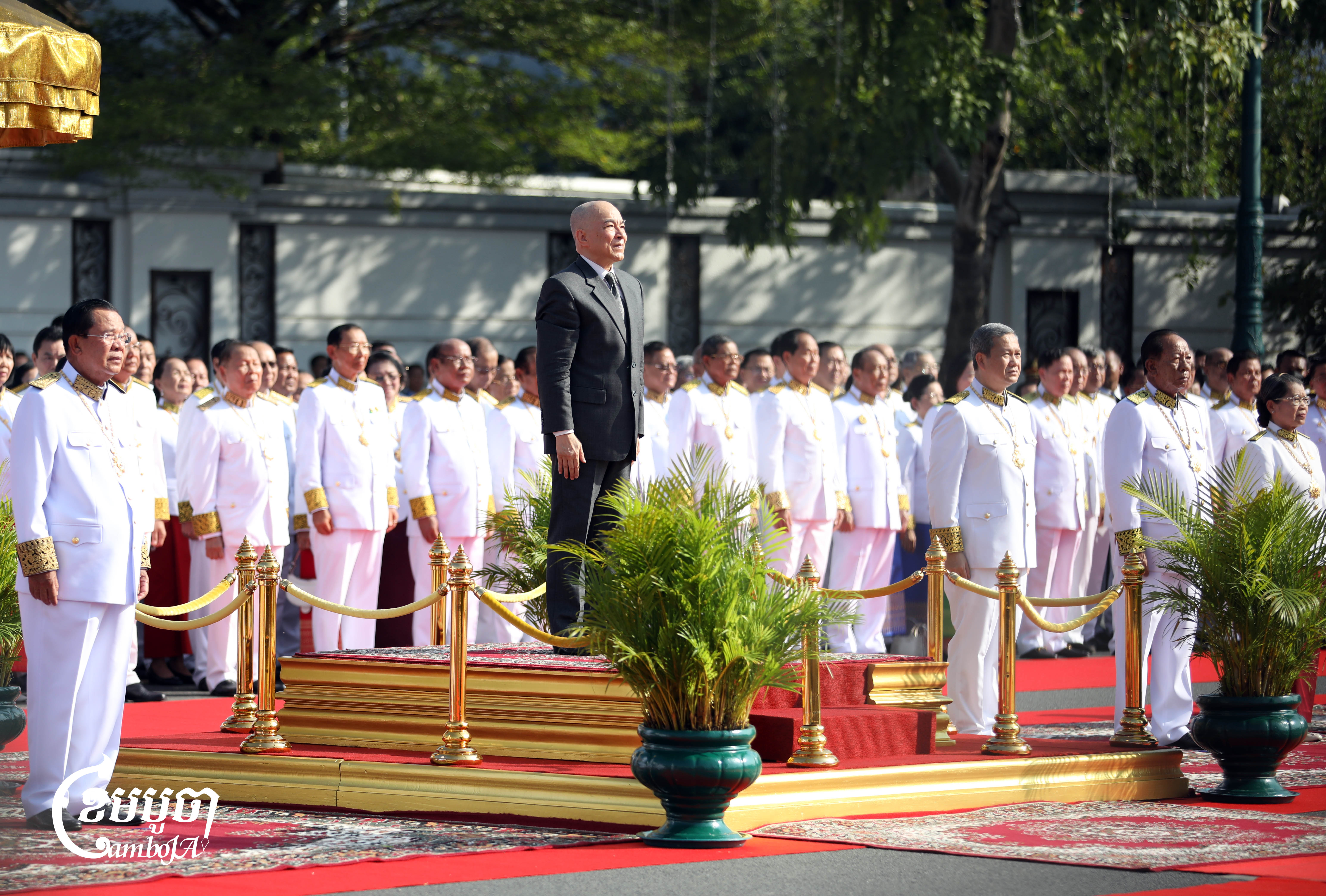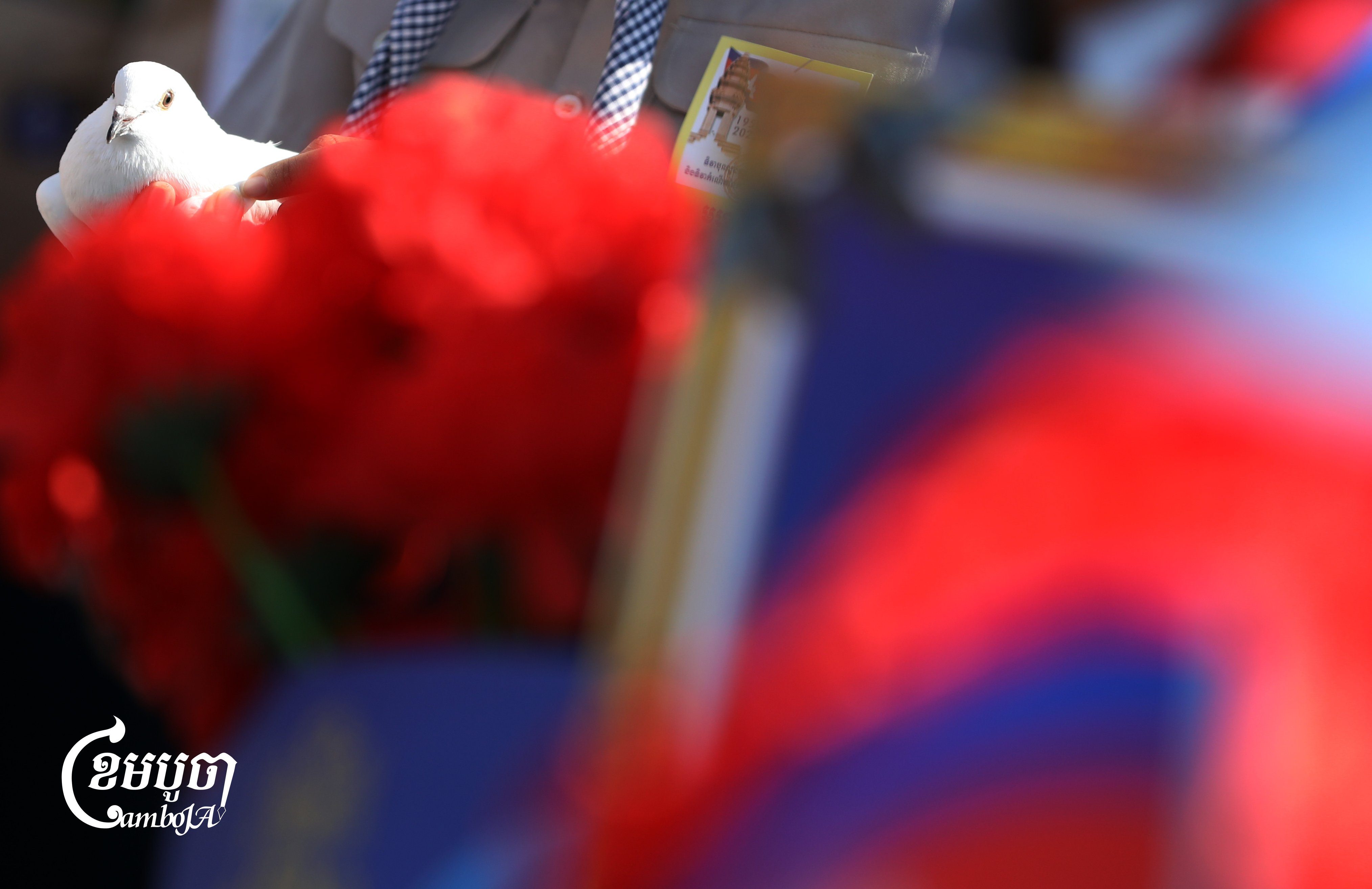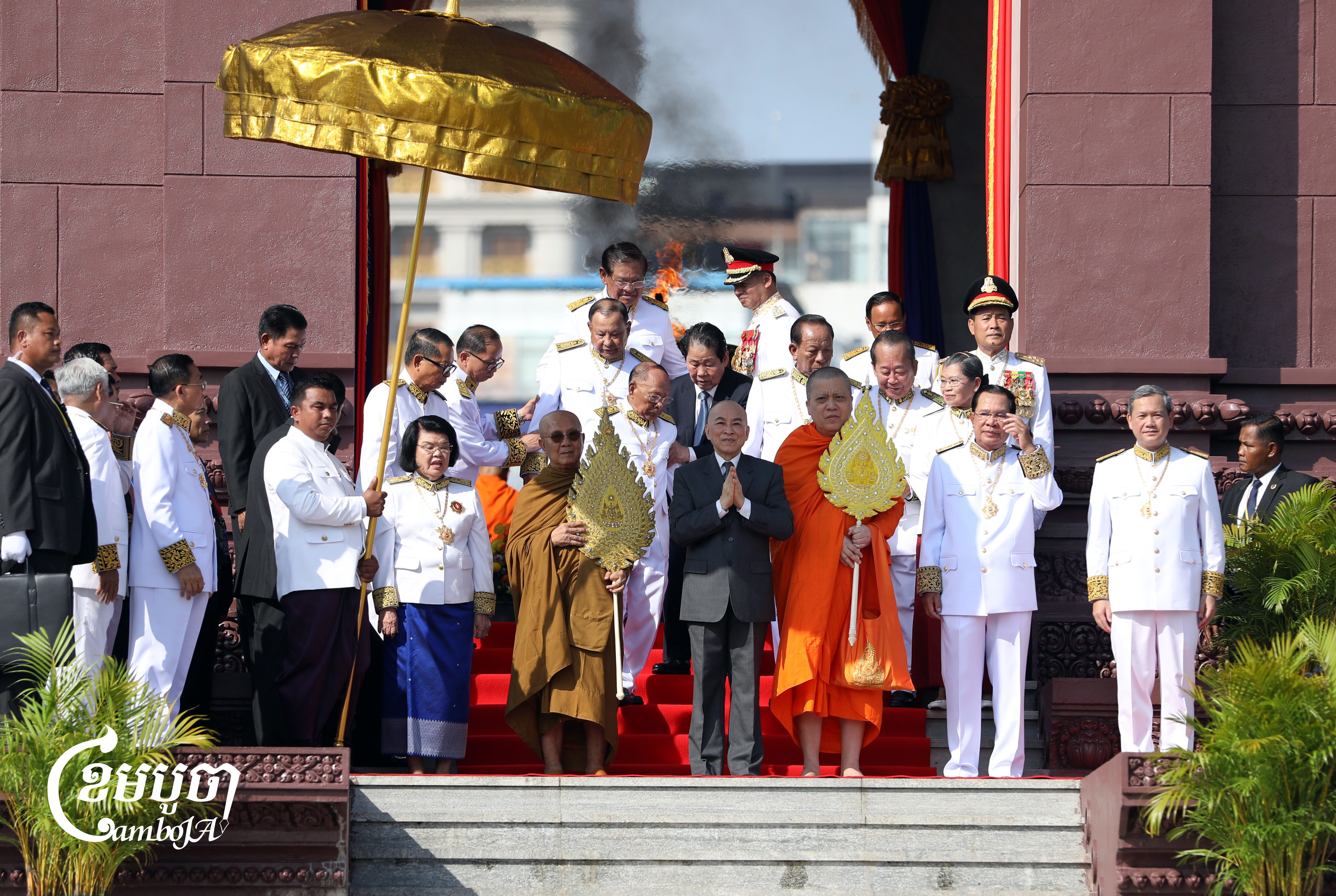 Officials and students participate in Independence Day celebrations in Phnom Penh on November 9. This year, Cambodia celebrates the 72nd anniversary of gaining independence from France in 1953. The historic day, which honors the freedom attained from French colonial rule, was marked with King Norodom Sihamoni lighting a fire at the Independence Monument where hundreds sang the national anthem and witnessed the release of colorful balloons. (CamboJA/ Pring Samrang)