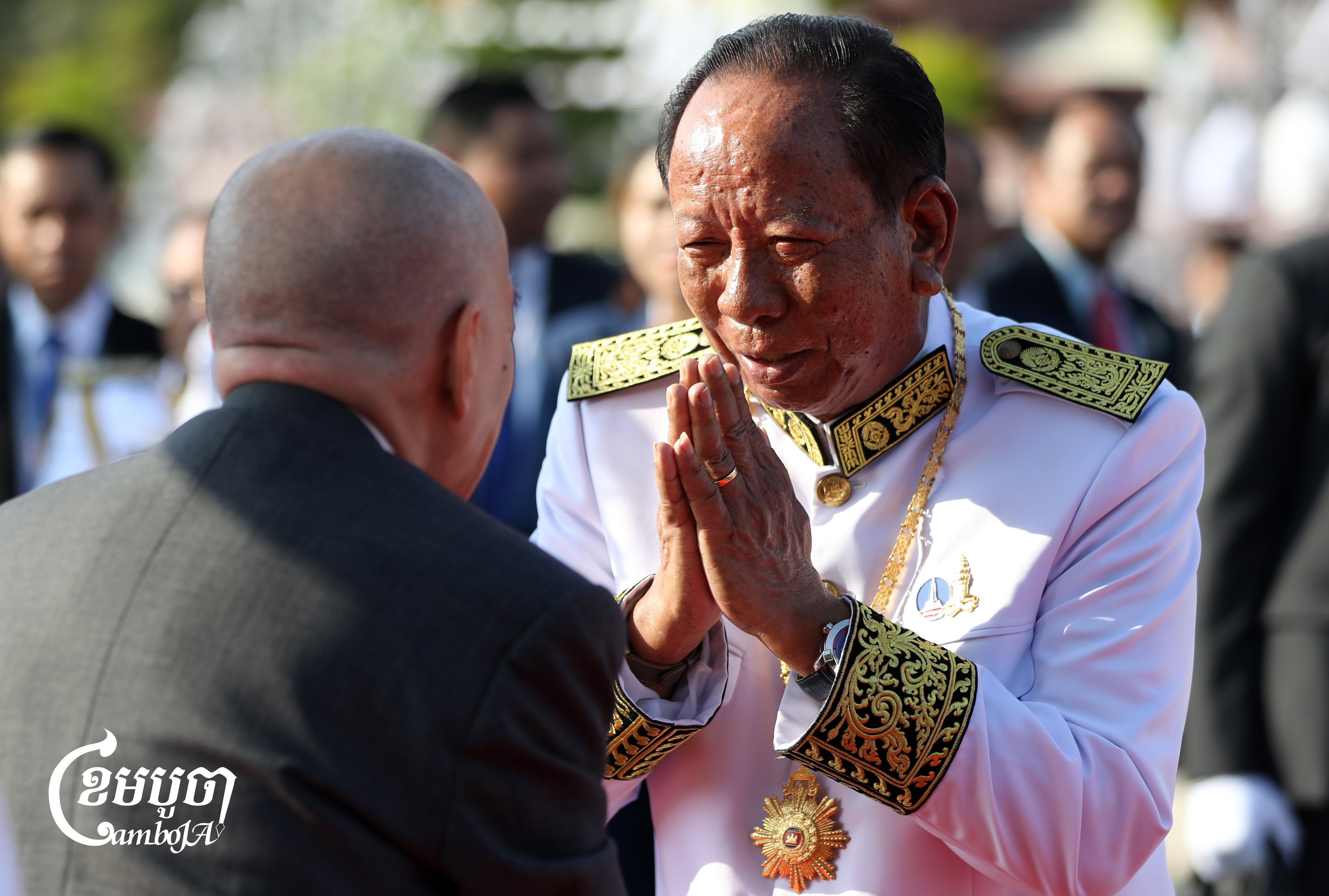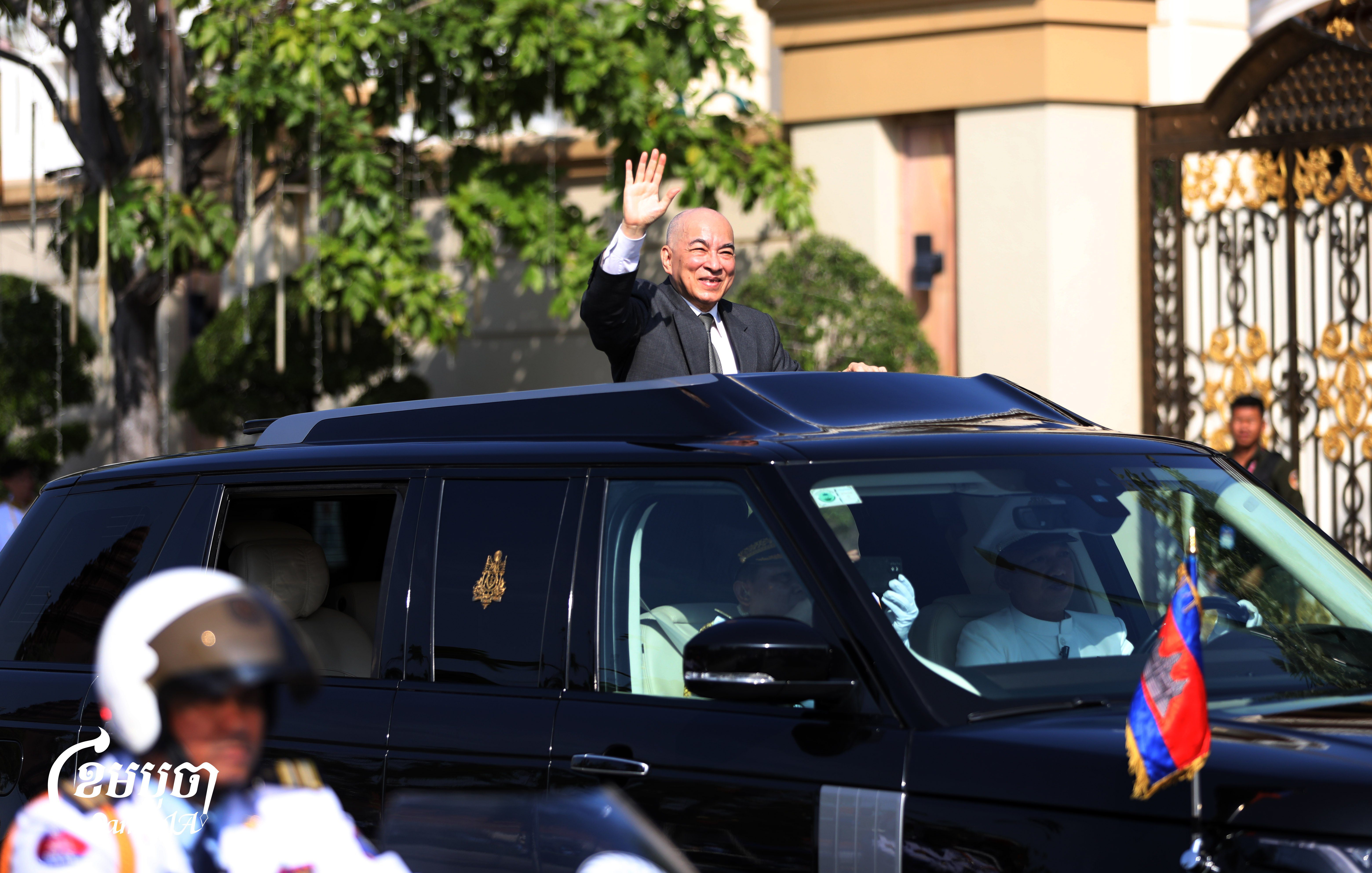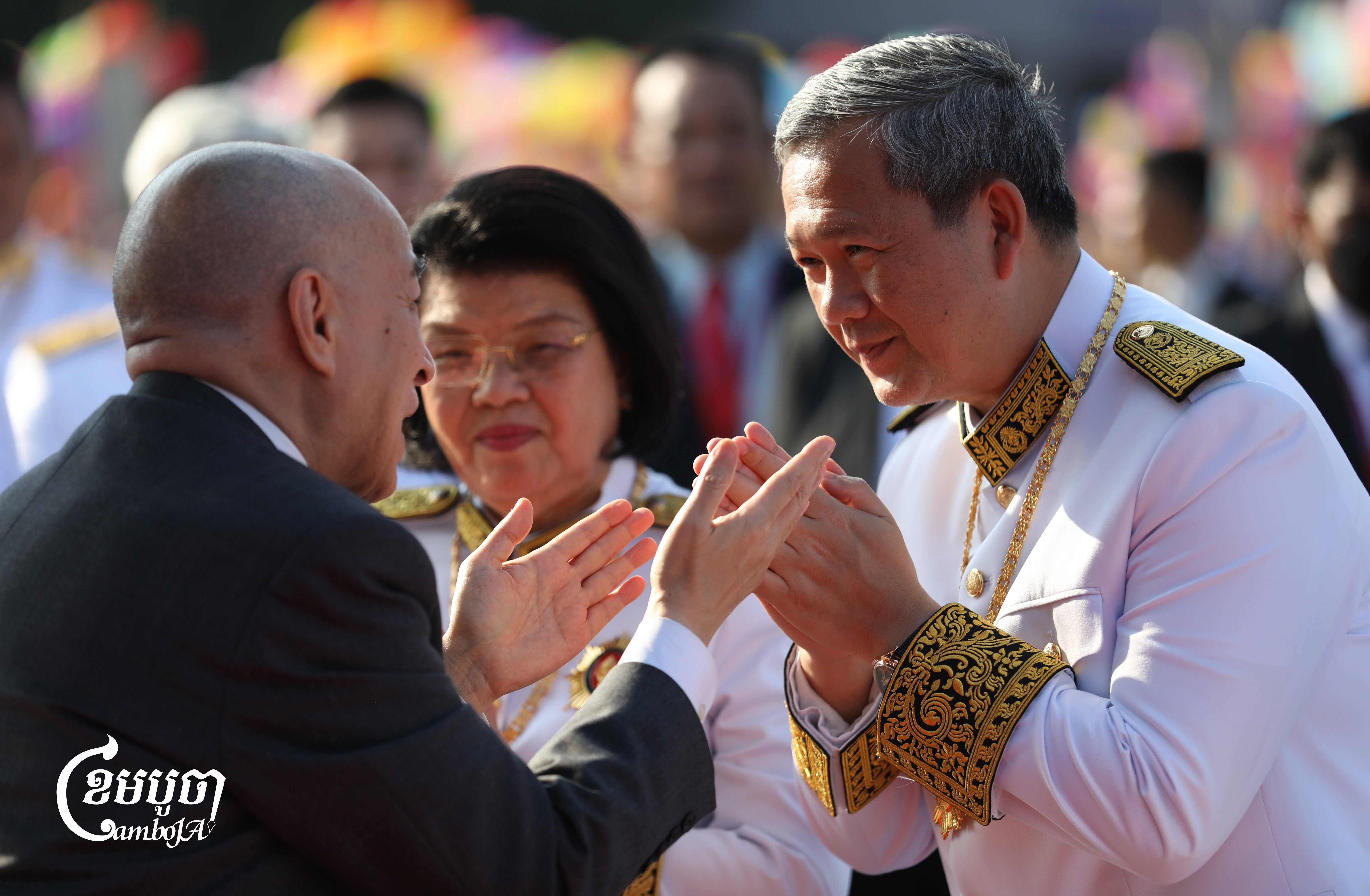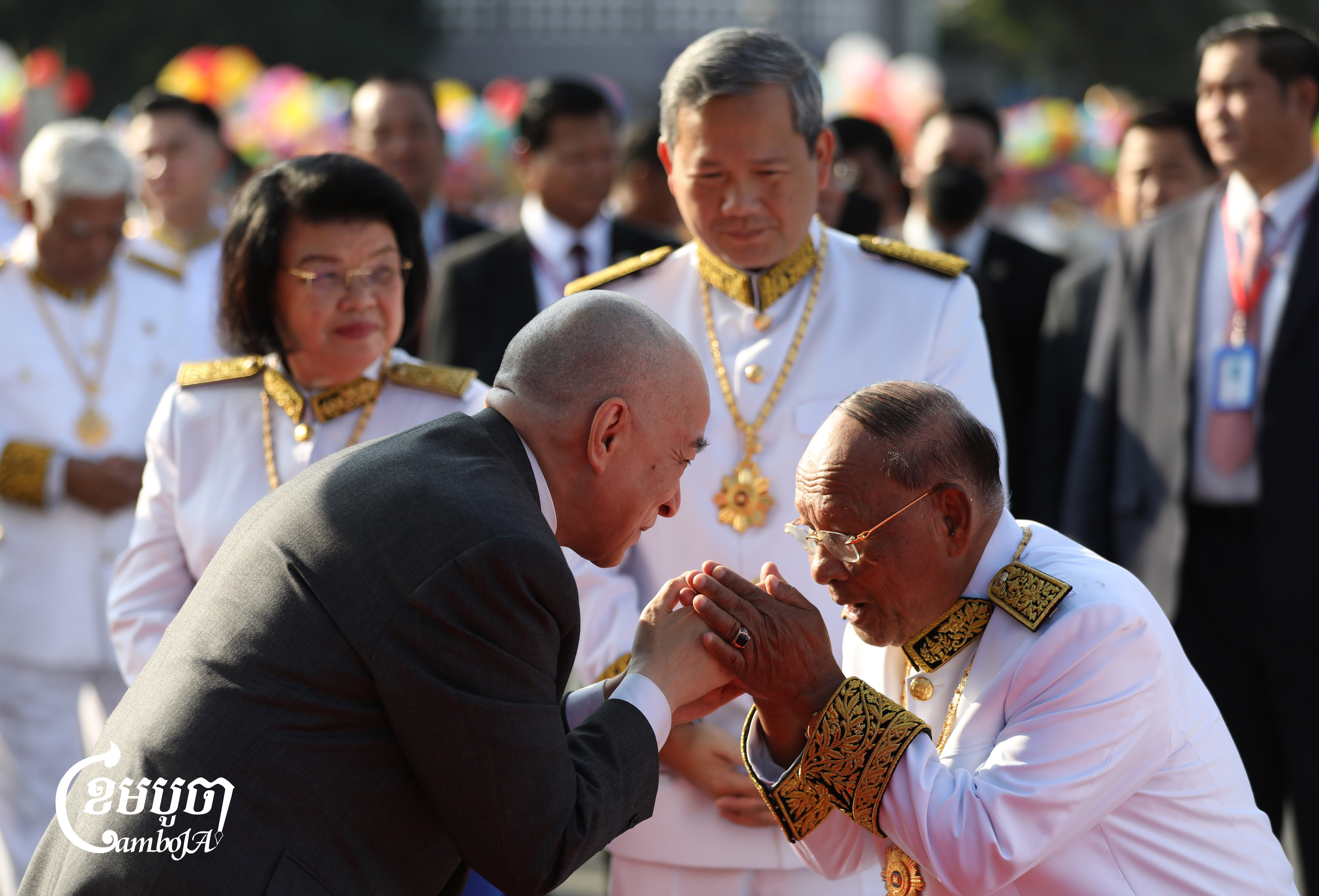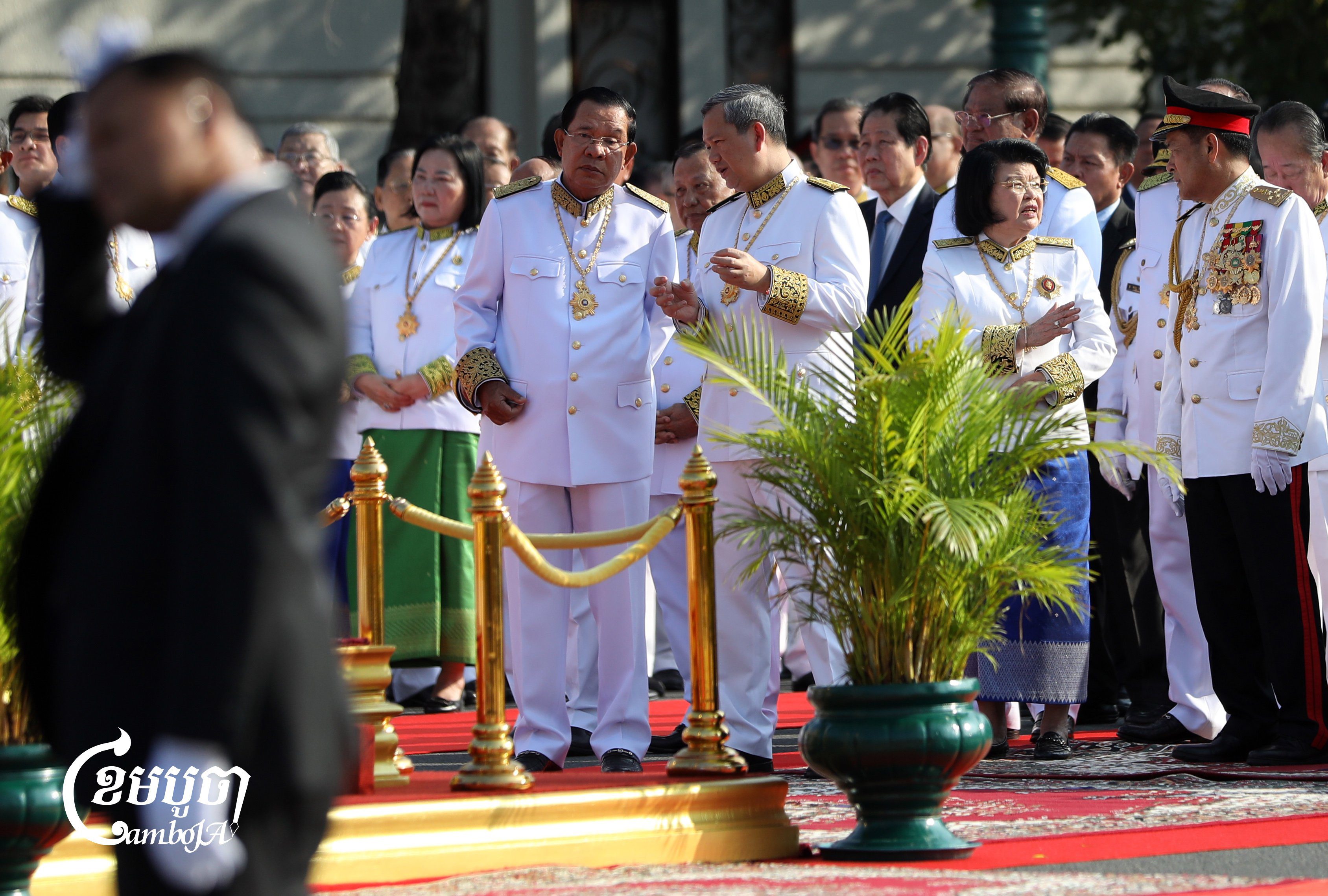 Officials and students participate in Independence Day celebrations in Phnom Penh on November 9. This year, Cambodia celebrates the 72nd anniversary of gaining independence from France in 1953. The historic day, which honors the freedom attained from French colonial rule, was marked with King Norodom Sihamoni lighting a fire at the Independence Monument where hundreds sang the national anthem and witnessed the release of colorful balloons. (CamboJA/ Pring Samrang)