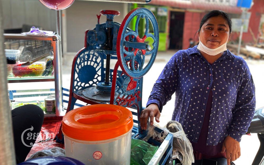 Soeun Yeak, 46, said she has struggled to find a new job after Lim Line International’s closure. She borrowed money at a high interest rate from a private lender to buy a motor cart to sell desserts on the street at Phnom Penh.