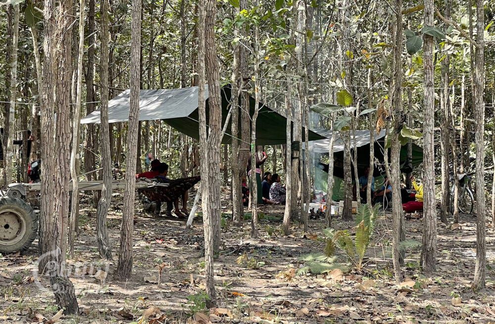 Kampong Speu—Oral district: The local villagers turned environmental activists who’ve pitched tents at the foot of Oral mountain are not giving up. Working in shifts, some 20 men patrol the area day and night to try and prevent soldiers from clearing the forest.