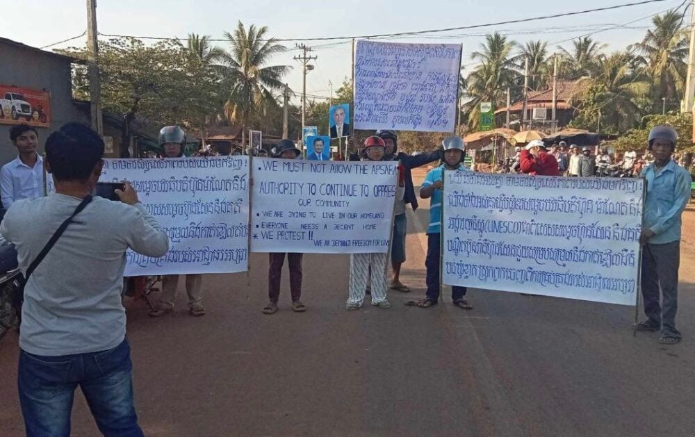 Puok district authorities and police unsuccessfully attempted to prevent the villagers from marching to the provincial hall with a petition, according to protestors. Residents held banners that read “We are dying to live in our homeland” and “We must not allow the Apsara authority to continue to oppress our community.”